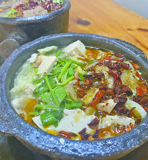 武陟砂鍋,傳承千年。制作時(shí),先將肉類食材熱鍋清水?dāng)嗌、去異味,然后放入盛有清水的砂鍋?nèi),旺火燒開(kāi),再用小火慢慢煨煮,湯味濃厚,肉質(zhì)酥嫩香爛。最令人驚艷的是,武陟砂鍋端上餐桌后,服務(wù)員會(huì)端著一勺剛炸好的紅辣椒油倒入砂鍋,“刺啦”一聲,刺激食客們的味蕾。