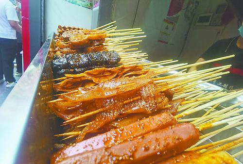朦朧的夜色中,忙碌了一天的人們脫去一身的疲憊,呼朋喚友,走進各個檔口。記者看到,此時每個檔口已是食客云集、人聲鼎沸,將市井的狂歡演繹得淋漓盡致,讓人倍感親切。結伴而來的食客,流連于各類美食前,商量著、問詢著,上前挑選各自喜愛的烤串、海鮮等,然后心滿意足地坐下來,夾起一筷子提前端上來的涼菜,碰下酒杯,邊說邊吃,聊得熱火朝天。