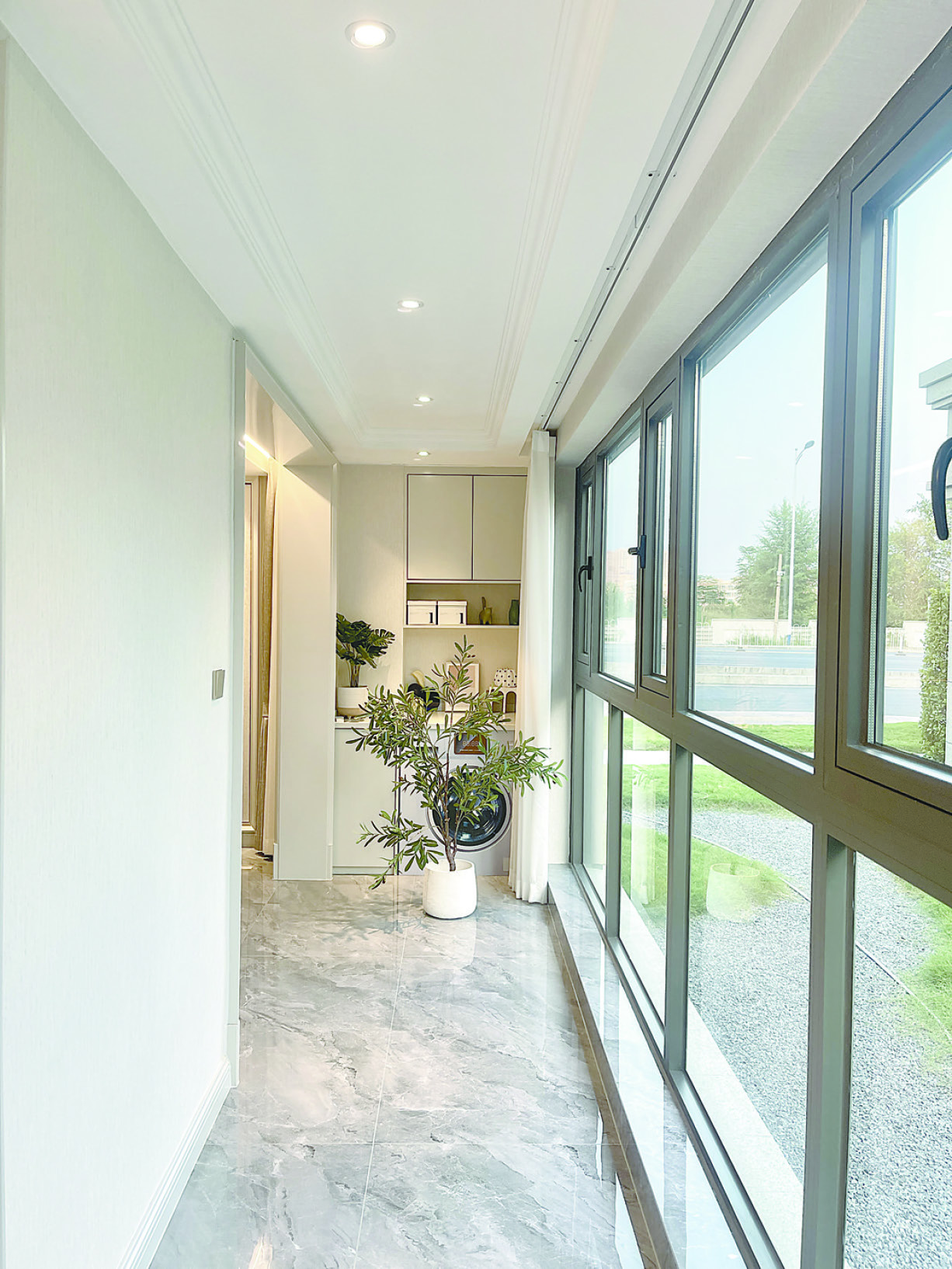 插座預(yù)留不足,未接水龍頭。裝修陽臺(tái)的時(shí)候,大部分人只考慮到某個(gè)方面的用水和用電,比如只給洗衣機(jī)預(yù)留插座,認(rèn)為水龍頭是不必要的,從而忽略陽臺(tái)所承載的多種活動(dòng)功能。事實(shí)上,南方地區(qū)最好為烘干機(jī)預(yù)留一個(gè)插座,南方天氣潮濕,尤其是梅雨天氣,衣服越晾越潮,還會(huì)有股怪味。而且像電動(dòng)晾衣架、氛圍燈、手機(jī)充電等可能會(huì)有的需求,也最好根據(jù)空間規(guī)劃提前考慮好要不要為此預(yù)留插座。同時(shí),如果陽臺(tái)種綠植的話,最好預(yù)留水龍頭,雖然也可以從其他地方接水澆灌,但方便性大打折扣。
