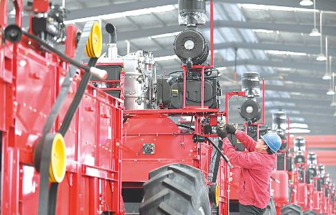 1月4日,位于沁陽經(jīng)濟技術(shù)開發(fā)區(qū)的焦作泰利機械制造股份有限公司,技術(shù)工人在組裝自走式谷物聯(lián)合收割機。新年伊始,沁陽經(jīng)濟技術(shù)開發(fā)區(qū)的各企業(yè)開足馬力,加緊生產(chǎn)趕訂單。