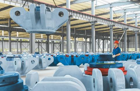 6月23日,焦作天寶桓祥機(jī)械科技有限公司車間工人在調(diào)運(yùn)六面頂設(shè)備配件。二季度臨近尾聲,記者在天寶恒祥公司生產(chǎn)車間看到,工人們正在操控?cái)?shù)臺(tái)設(shè)備開足馬力生產(chǎn)六面頂部件,趕訂單,保交付,奮戰(zhàn)二季度,確!半p過半”。