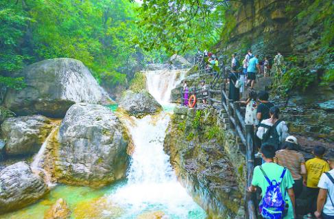 峽谷瀑布群驚艷絕倫,看瀑布還得來云臺(tái)山。除了云臺(tái)天瀑,云臺(tái)山還以其豐富的峽谷瀑布資源而聞名。紅石峽的幽深、泉瀑峽的靈動(dòng)、潭瀑峽的秀美……每一處都是大自然的鬼斧神工,瀑布與峽谷交織成一幅幅動(dòng)人心魄的景致。紅石峽內(nèi)涼意滿滿,瀑布成群自崖壁傾瀉,遠(yuǎn)觀似銀練垂天,近觀如飛珠濺玉;潭瀑峽谷內(nèi)風(fēng)光怡人,宛若江南,三步一泉,五步一瀑,十步一潭,大大小小的瀑布隨著錯(cuò)落的巖層落下,酣暢靈動(dòng),渾然天成;泉瀑峽里溪潭相依,泉瀑爭(zhēng)流,姿態(tài)萬千,有的如絲如縷,輕盈飄逸;有的則如千軍萬馬,奔騰而下,每一步都充滿了驚喜與震撼。