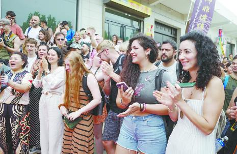 表演結(jié)束后,外國(guó)友人的領(lǐng)隊(duì)用英文告訴大家,其中一名表演者叫韓爍,今年只有14歲。外國(guó)友人們紛紛驚呼,并熱情地與表演者握手!爸袊(guó)的黃河文化非常優(yōu)秀,底蘊(yùn)深厚。受文化的熏陶,這里的孩子很能吃苦,非常厲害!眮碜砸獯罄腣aleria Casali說。