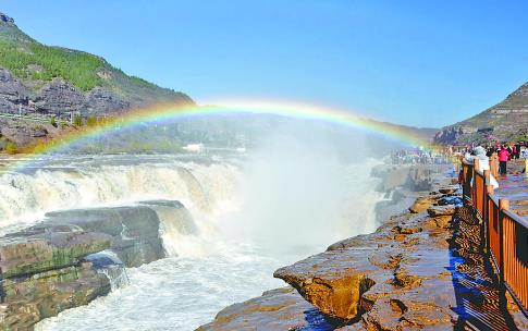 黃河壺口瀑布現(xiàn)“彩虹橋”景觀