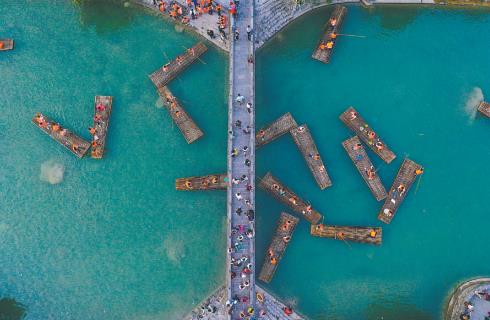 移步小寨溝,看到的是另一番充滿趣味與詩意的景象。溪水潺潺,游人或乘坐竹筏漫游湖面,或體驗槳板激起漣漪,充分感受“舟行碧波上,人在畫中游”的意境。循著泠泠水聲深入潭瀑峽,三步一泉、五步一瀑、十步一潭,情人瀑的柔美、丫字瀑的奇崛、不老泉的澄澈……串聯(lián)成一條天然山水畫廊。溪潭成群,清可見底,游魚、細石歷歷可數(shù),赤足涉水而行,沁涼之意瞬間驅散暑氣,令人心曠神怡。