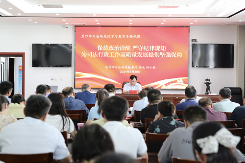 為進(jìn)一步強(qiáng)化紀(jì)律規(guī)矩意識(shí),改進(jìn)全市司法行政系統(tǒng)黨員干部紀(jì)律作風(fēng)建設(shè),引導(dǎo)廣大黨員干部學(xué)紀(jì)、知紀(jì)、明紀(jì)、守紀(jì),根據(jù)黨紀(jì)學(xué)習(xí)教育工作部署要求,6月28日,市司法局舉辦黨紀(jì)學(xué)習(xí)教育專題黨課。市司法局黨組書記、局長(zhǎng)孫小獻(xiàn)以《保持政治清醒 嚴(yán)守紀(jì)律規(guī)矩 為司法行政工作高質(zhì)量發(fā)展提供堅(jiān)強(qiáng)保障》為題,為局機(jī)關(guān)及直屬單位黨員干部講授了一堂主題鮮明、內(nèi)涵豐富的黨紀(jì)學(xué)習(xí)教育專題黨課。