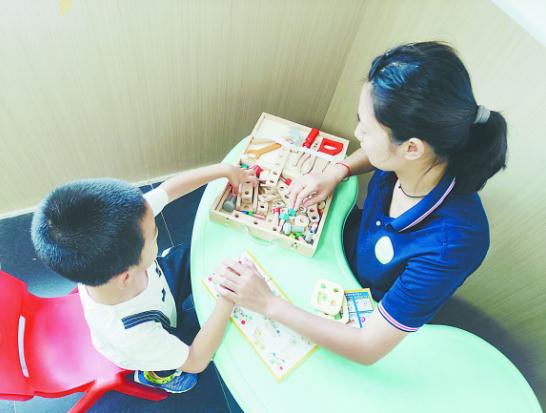 啟慧兒童康復(fù)中心老師在對小睿進行康復(fù)訓(xùn)練。本報記者 王龍卿 攝