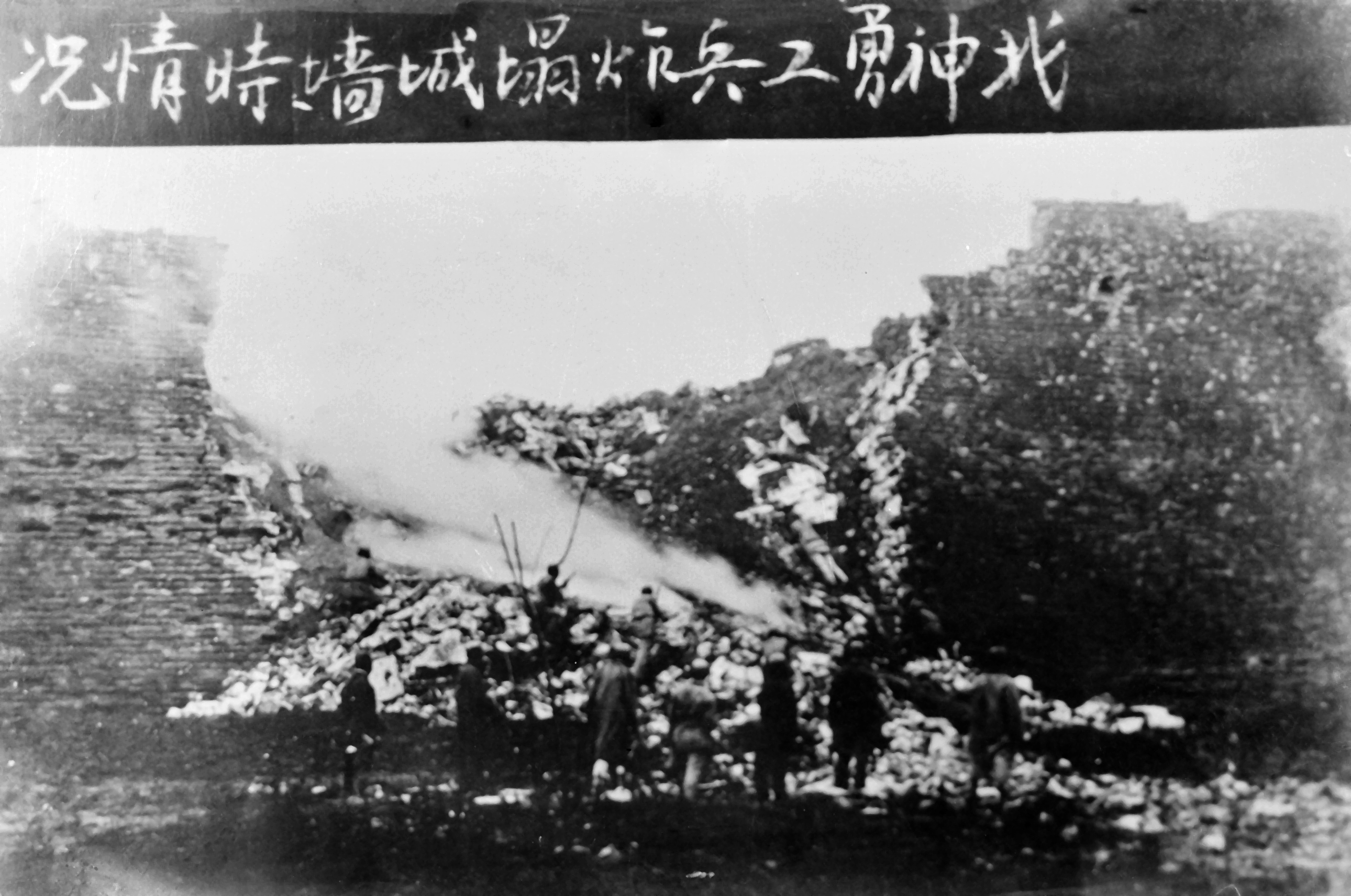 沁陽(yáng)戰(zhàn)役,我軍攻破沁陽(yáng)城墻的情形。