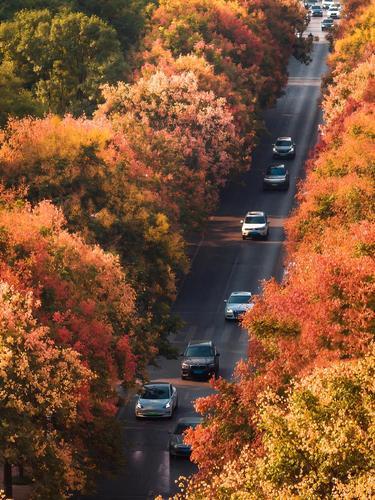 騎行在青云大道上,兩側(cè)柿子樹(shù)碩果低垂,青黃相間的柿子如燈籠綴滿(mǎn)枝頭,與欒樹(shù)的繽紛相映成趣。微風(fēng)過(guò)處,欒樹(shù)花簌簌飄落,少年騎車(chē)碾過(guò)金色花毯,驚起幾只啄食的麻雀。