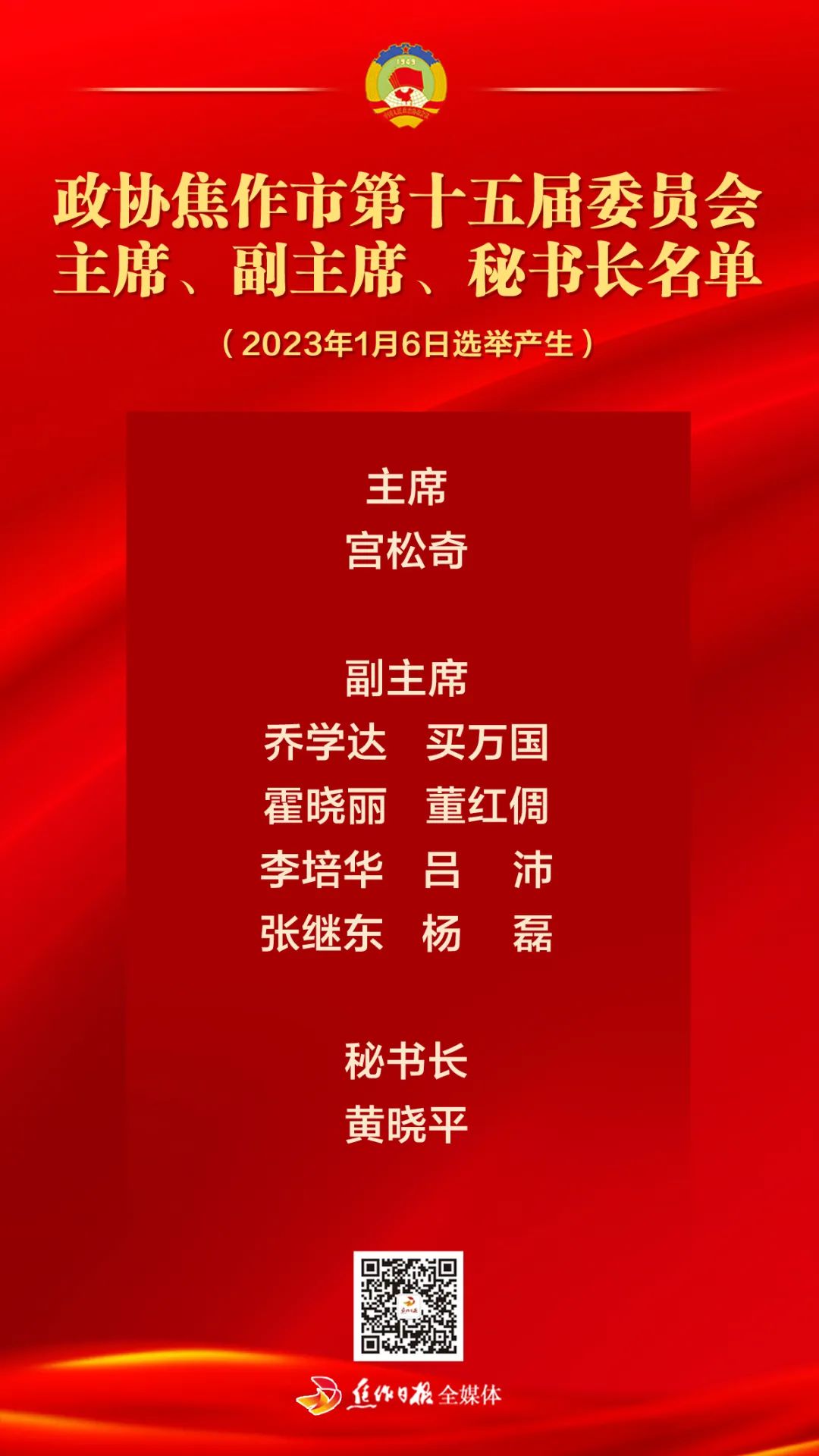 第十五屆焦作市委員會主席、副主席、