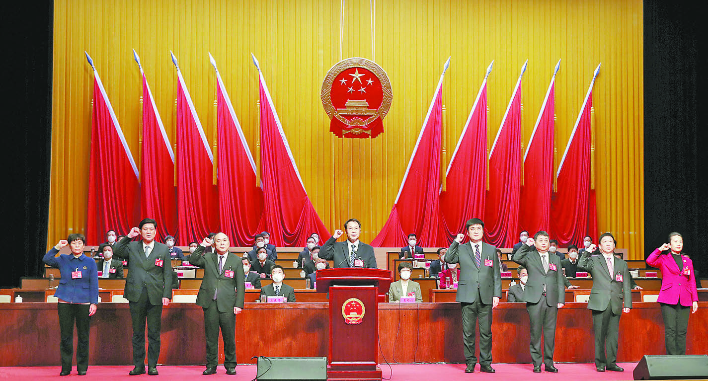 1月7日,市十四屆人大常委會(huì)主任李民生和市十四屆人大常委會(huì)副主任、秘書長(zhǎng)進(jìn)行憲法宣誓。