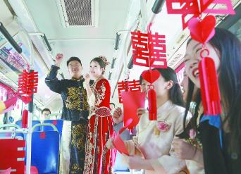 公交車當(dāng)“花轎”一路歡歌一路笑
