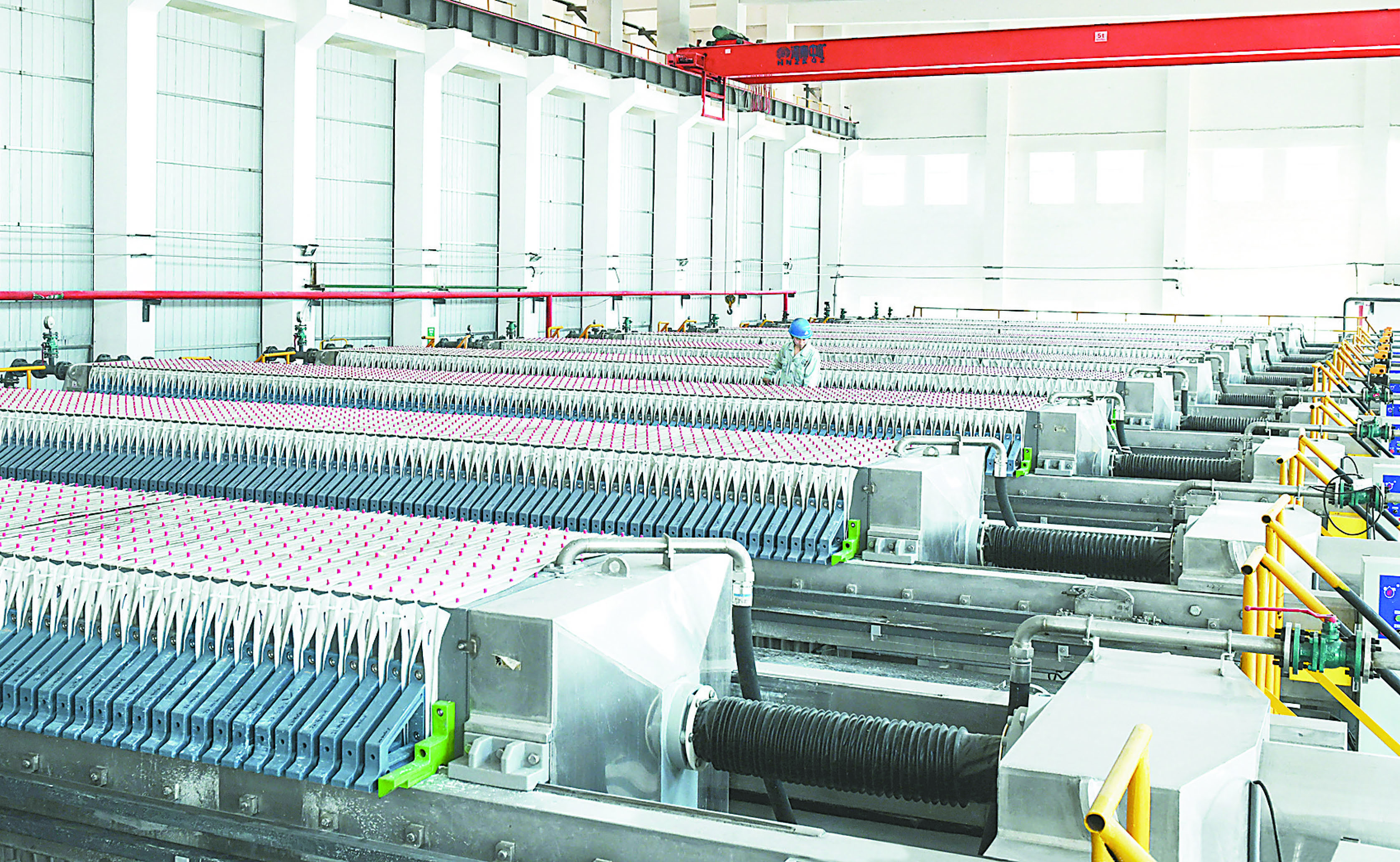河南佰利新能源20萬噸磷酸鐵項目車間的工人在生產(chǎn)作業(yè)。