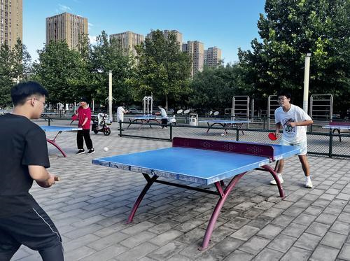 市民在市太極體育中心室外乒乓球場地打球。記者 趙改玲 攝