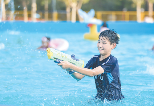 圖① 在市龍源湖公園的水上樂園內(nèi),孩子們盡情享受清涼時光。