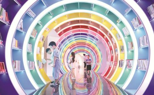 8月17日,孩子們?cè)谥芨G圖書館時(shí)光隧道區(qū)閱讀。該館位于中站區(qū)龍翔街道周窯村,是第一家河南省圖書館鄉(xiāng)村分館,館內(nèi)設(shè)有時(shí)光隧道區(qū)、兒童手作區(qū)、分階梯讀書區(qū)、文創(chuàng)產(chǎn)品區(qū)等區(qū)域,陳列圖書涵蓋文學(xué)、藝術(shù)、科普、歷史、少兒等領(lǐng)域。
