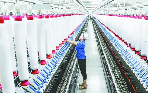 3月22日,位于博愛經(jīng)濟(jì)技術(shù)開發(fā)區(qū)的焦作市匯百川紡織有限公司工人在紡紗。該公司依靠產(chǎn)品質(zhì)量和企業(yè)信譽(yù),與眾多客戶達(dá)成長期供貨協(xié)議,保持穩(wěn)定發(fā)展趨勢。目前,該公司年銷售收入已達(dá)19.5億元。