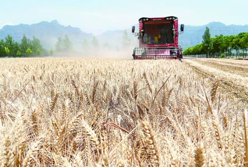 6月3日,河南省沁陽市紫陵鎮(zhèn)趙寨村,聯(lián)合收割機(jī)在田間搶收小麥。時下,各地小麥?zhǔn)斋@工作正在如火如荼展開,金色麥田上來回穿梭的收割機(jī),猶如在大地上跳動的琴鍵,奏響豐收的樂章。