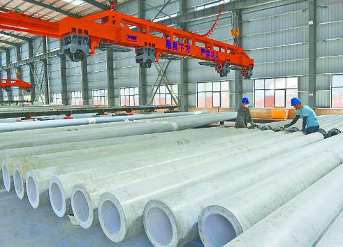 6月2日,在位于孟州市的河南中恩安全技術(shù)有限公司電力線(xiàn)桿生產(chǎn)車(chē)間,工人在進(jìn)行質(zhì)檢作業(yè)。該項(xiàng)目總投資1.15億元,占地面積38.14畝,是一座電力器材綜合生產(chǎn)基地,主要生產(chǎn)電力非應(yīng)力水泥制品、電力標(biāo)識(shí)標(biāo)牌、電力金具及鐵附件和電力安全工器具等電力器材,能有效增加就業(yè)崗位200個(gè),增加稅收1000萬(wàn)元。