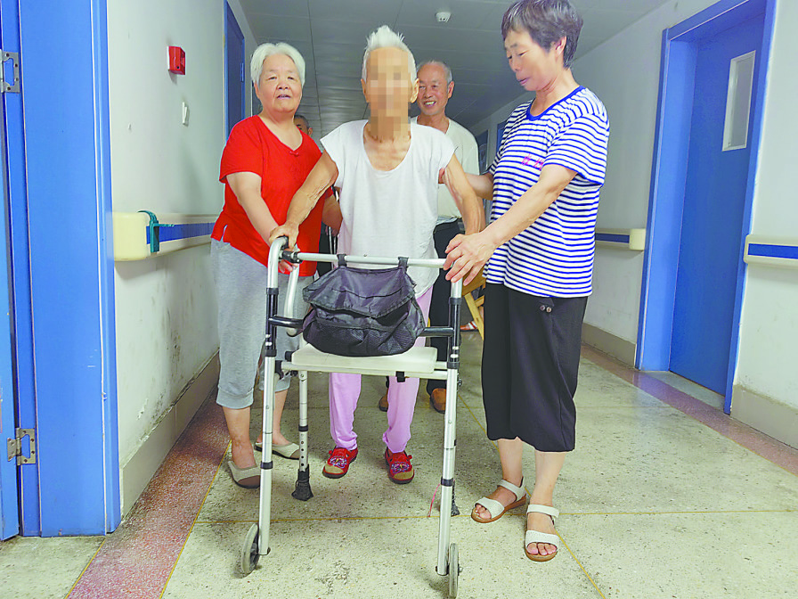 96歲老人(中)術(shù)后在練習(xí)行走。