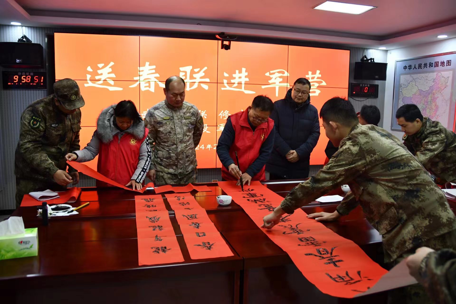 春節(jié)將至,年味漸濃。為賡續(xù)“擁軍優(yōu)屬、擁政愛(ài)民”的雙擁優(yōu)良傳統(tǒng),增強(qiáng)軍地魚(yú)水情,豐富官兵文化生活,2月5日,修武縣文聯(lián)、縣退役軍人事務(wù)局、縣書(shū)法家協(xié)會(huì)聯(lián)合開(kāi)展的“送春聯(lián)進(jìn)軍營(yíng)”活動(dòng)在修武縣人武部圓滿舉行。