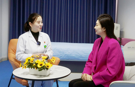 市第四人民醫(yī)院心理睡眠科護(hù)士長(zhǎng)王艷(左)在本報(bào)《名醫(yī)面對(duì)面》節(jié)目中,講解有關(guān)睡眠的知識(shí)。