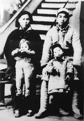 赴朝作戰(zhàn)前,璩懷珍與妻子以及兩個女兒合影留念。