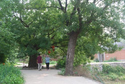 大南坡的東小莊(原名臥牛村)、西小莊(原名小北坡),各有一株國槐。南坡趙氏宗祠碑刻記載,它們是明洪武4年,趙五佬偕侄子趙玘從山西省洪洞縣遷居這里之后,叔侄二人分別所植,胸圍都是4米多,距今已經(jīng)650多年。東小莊國槐的樹根地下延伸6米之后又生出的一株國槐,樹齡已有百年,胸圍1.8米,形成罕見的子母槐。母子相依,意味深長,林業(yè)專家說,這是焦作地區(qū)獨(dú)一無二的景觀。前幾年,老槐樹一度出現(xiàn)了衰老之狀,在古槐周圍住戶的精心呵護(hù)下,近幾年又煥發(fā)了生機(jī)。曾有行人從樹下走過,樹上飛出的錦雞讓她又驚又喜。趙秀梅老師講的故事更有趣:那年夏季,她親眼目睹十幾只松鼠從小槐樹上先后下到地面,然后不約而同地爬上老槐樹,在一股橫向的樹干上等距離排列,并且頭部一致朝相同的方向,似乎遵循著教練的口令,看來小精靈們也是挺守規(guī)矩的。未能拍下這個(gè)瞬間,成為趙老師心中的一樁憾事。