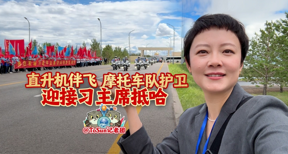 時(shí)政Vlog丨直升機(jī)伴飛 摩托車隊(duì)護(hù)衛(wèi) 迎接習(xí)主席抵哈