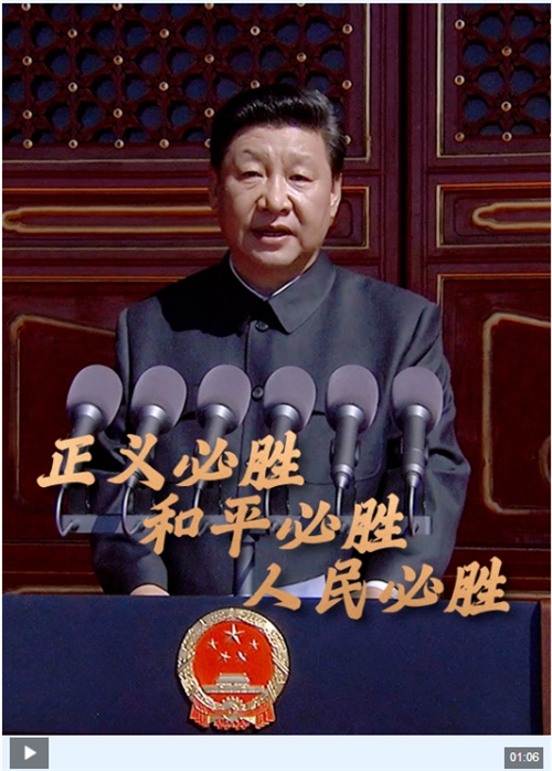 2015年9月3日,在紀(jì)念中國人民抗日戰(zhàn)爭暨世界反法西斯戰(zhàn)爭勝利70周年大會上,習(xí)近平主席 “三個必勝”振聾發(fā)聵,道出了中國人民的心聲,也承載著世界人民的愿望。