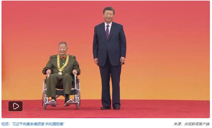 這是國家勛章和國家榮譽稱號頒授儀式上的一個溫暖細節(jié),儀式上,習(xí)近平向黃宗德等分別授予“共和國勛章”“友誼勛章”和國家榮譽稱號獎?wù)隆T谛轮袊闪?5周年之際,共和國再次以最高規(guī)格褒獎英雄模范。