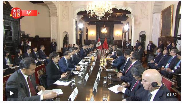 當(dāng)?shù)貢r(shí)間11月14日下午,國家主席習(xí)近平在利馬總統(tǒng)府同秘魯總統(tǒng)博魯阿爾特舉行會(huì)談。