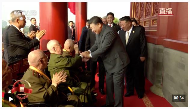 致敬英雄!習(xí)近平與天安門(mén)城樓觀禮席的抗戰(zhàn)老兵親切握手