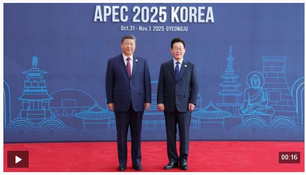 獨(dú)家視頻丨習(xí)近平同韓國(guó)總統(tǒng)李在明握手合影