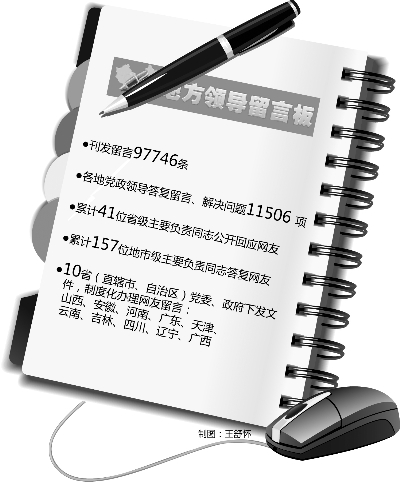 截至2010年7月30日,已有41位省級主要負(fù)責(zé)同志以公開信等方式在留言板回復(fù)網(wǎng)友的留言。越來越多的領(lǐng)導(dǎo)干部投身到網(wǎng)絡(luò)問政的潮流之中。