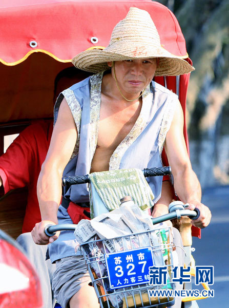 8月2日,一名三輪車夫頂著高溫烈日在蘇州街頭載客騎行。當日,江蘇蘇州最高氣溫從前一天的38攝氏度攀升至38.9攝氏度,蘇州市氣象臺繼續(xù)發(fā)布高溫橙色預警信號。連日來,蘇州驕陽似火,高溫持續(xù)。新華社發(fā)(王建中 攝)