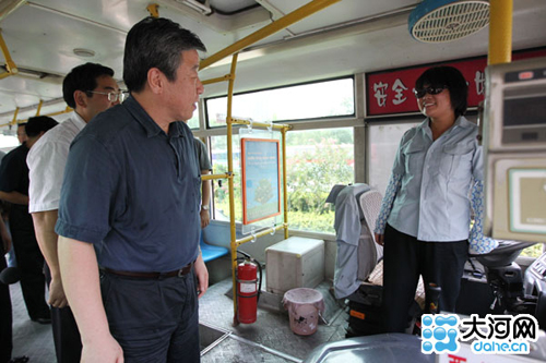 盧展工還與同乘公交的大學(xué)生、個(gè)體戶(hù)、市民、退休工人等一一交談,詳細(xì)了解他們對(duì)鄭州公交工作的意見(jiàn)建議。