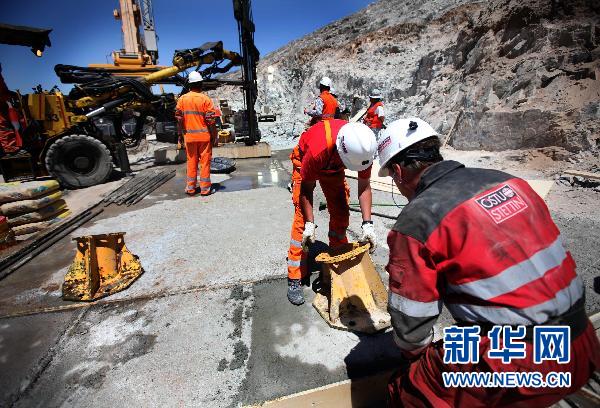 10月12日,在智利圣何塞銅礦,救援人員為救援工作進(jìn)行最后的準(zhǔn)備。智利圣何塞銅礦被困礦工救援工作于當(dāng)?shù)貢r(shí)間12日下午正式開始。新華社發(fā)(智利政府提供)