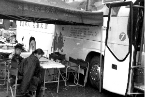 當(dāng)病人和醫(yī)生都在等候的時候,血液中心的采血車,也在等候,等候義務(wù)獻(xiàn)血的人到來。