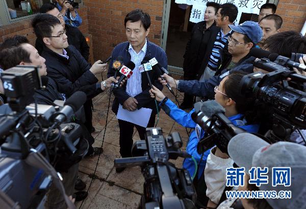 2月26日,在新西蘭克賴斯特徹奇,中國(guó)駐新西蘭大使徐建國(guó)(中)向記者公布在地震中失蹤的中國(guó)人最新情況。新華社記者李秋嬋攝