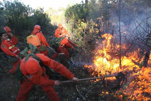 | 麗江(云南),2010年3月1日 麗江玉龍縣發(fā)生森林大火 2月28日,在云南省麗江市玉龍縣黃山鎮(zhèn)五臺(tái)辦事處所屬集體山林,麗江森警支隊(duì)官兵正在滅火。 當(dāng)日凌晨5時(shí)左右,這處集體山林發(fā)生森林大火。目前,火勢(shì)尚未得到控制,當(dāng)?shù)匾褟膶庉、永勝縣抽調(diào)森警增援,力爭(zhēng)3月1日天亮前控制火勢(shì)。 |
