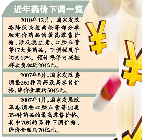 本報(bào)訊(記者 黃佩)繼去年12月國(guó)家發(fā)改委降低了部分外資藥品的最高零售價(jià)之后,昨天發(fā)改委再揮大刀,決定從3月28日起降低部分抗生素和循環(huán)系統(tǒng)類(lèi)藥品最高零售價(jià)格,共涉及162個(gè)品種,近1300個(gè)劑型規(guī)格,平均降幅為21%,預(yù)計(jì)每年可減輕群眾負(fù)擔(dān)近100億元。與上次不同的是,這次國(guó)家發(fā)改委對(duì)外資與本土企業(yè)各打“五十大板”,在華的近半外資藥廠(chǎng)藥品都有涉及。不過(guò)不少市民反映,藥價(jià)已降了27次,擔(dān)心此次降價(jià)仍難起到實(shí)際作用。