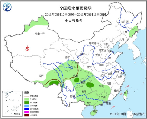 據(jù)中央氣象臺預報,3月10日至13日,西南地區(qū)東部及長江以南大部地區(qū)多小到中雨天氣,新疆北部、青藏高原南部和東部、西北地區(qū)東南部、內(nèi)蒙古東北部等地的部分地區(qū)有小到中雪(雨)或陣雪,其中新疆北部局部有大到暴雪。