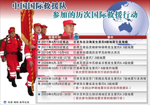 圖表:中國國際救援隊參加的歷次國際救援行動新華社發(fā)