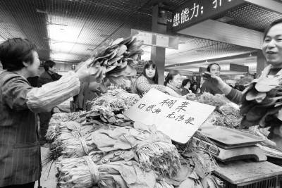 北京菜販打出菠菜“無(wú)污染”提示牌吸引顧客 袁文攝