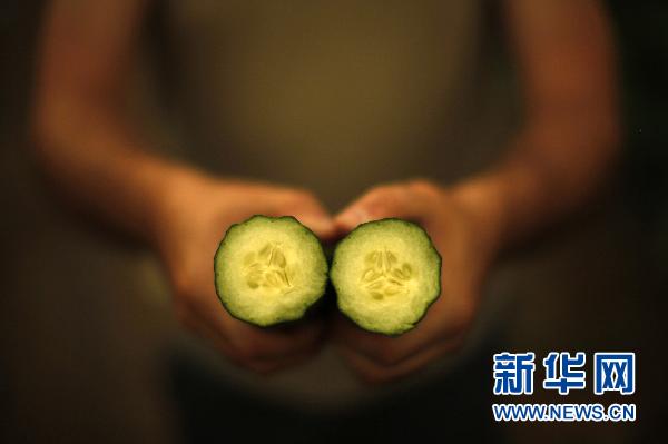 5月29日,在西班牙馬拉加省阿爾加羅沃的一處溫室,一名農(nóng)民手持兩截黃瓜。德國衛(wèi)生部門28日說,3名女子可能因食用受腸出血性大腸桿菌(EHEC)“污染”的黃瓜死亡。 德國方面懷疑,大腸桿菌疫情由“毒”黃瓜引發(fā)。這些受大腸桿菌“污染”的黃瓜可能來自西班牙阿爾梅里亞省和馬拉加省的兩家出口商。西班牙方面已暫停兩家出口商相關(guān)生產(chǎn)與銷售。新華社/路透