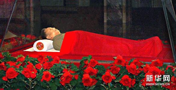 資料圖片:據(jù)朝中社12月20日?qǐng)?bào)道,朝鮮當(dāng)天開始舉行吊唁朝鮮最高領(lǐng)導(dǎo)人金正日的儀式,朝鮮勞動(dòng)黨中央軍事委員會(huì)副委員長金正恩率朝鮮黨、國家和軍隊(duì)領(lǐng)導(dǎo)人到錦繡山紀(jì)念宮金正日的靈柩前吊唁。這張朝中社提供的照片顯示,金正日的遺體被安放在透明棺內(nèi),身著生前最常穿的夾克服。 新華社/朝中社