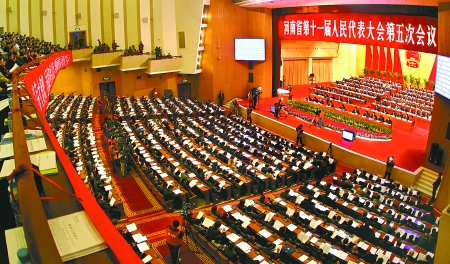 。ㄓ浾邉嗇x)1月8日上午,河南省第十一屆人民代表大會第五次會議在省人民會堂隆重開幕。來自全省各地的省人大代表會聚一堂,共商中原經(jīng)濟區(qū)發(fā)展大計,謀劃中原崛起河南振興美好未來。
