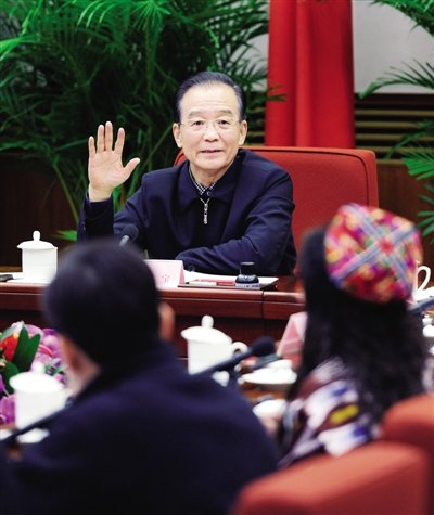 2月7日,溫家寶聽取基層群眾對《政府工作報告(征求意見稿)》的意見和建議。新華社記者 李濤 攝
