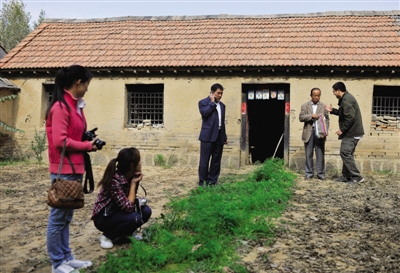 10月15日中午,山東省高密市大欄鄉(xiāng)平安莊,30多個(gè)慕名從東營市、大連市,以及韓國的來訪者,穿過敞開的鐵門,來到莫言二哥管謨欣家滿是金黃色玉米棒子的院落中。“我們是來看莫言舊居的!甭曇魝鞯轿堇锟簧系墓苤冃蓝,他邊應(yīng)承邊熟練地從抽屜拿起鑰匙,拉開門,伸出布滿老繭的手,笑吟吟地迎接大家,然后,領(lǐng)著大伙兒往約500米開外的莫言舊居走去。同樣的動(dòng)作,自莫言獲諾獎(jiǎng)后,管謨欣不知做了多少次,包括反復(fù)接受幾十家中外媒體記者的采訪。山東省旅游局的調(diào)研組也來到這里,考察將舊居開發(fā)成旅游線路的可行性,并提出修繕舊居。村民說,此前,莫言曾屢次婉拒當(dāng)?shù)卣男蘅樥埱,卻自掏腰包,給村里修了路。